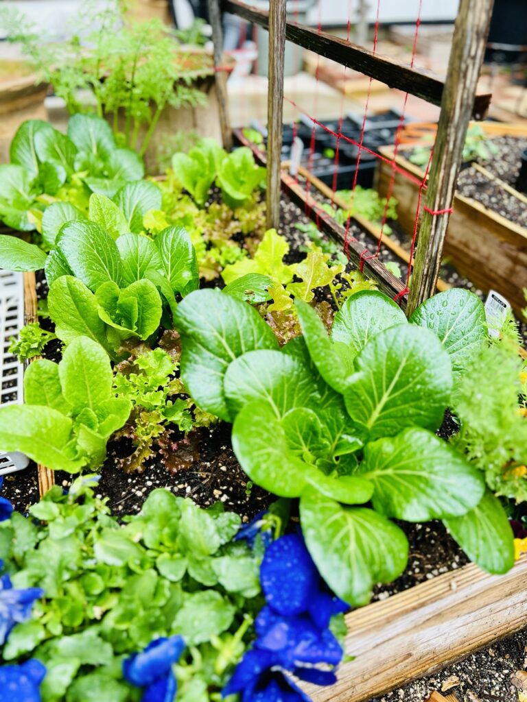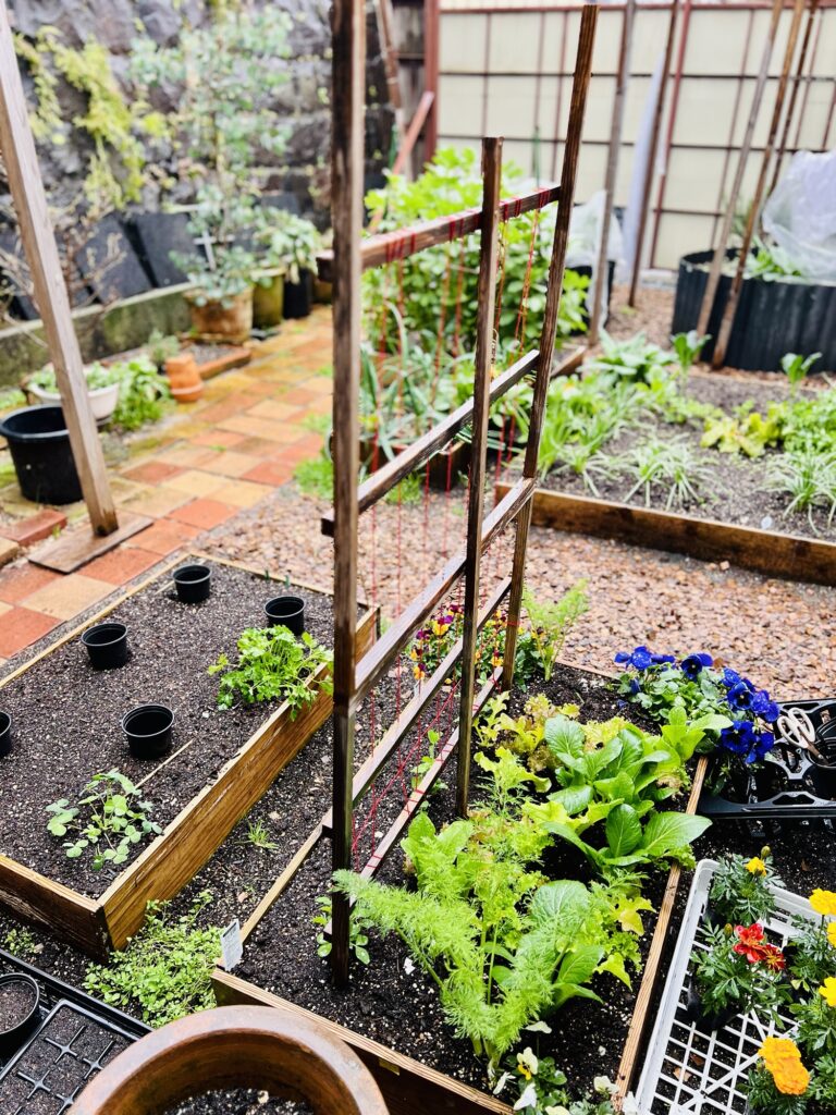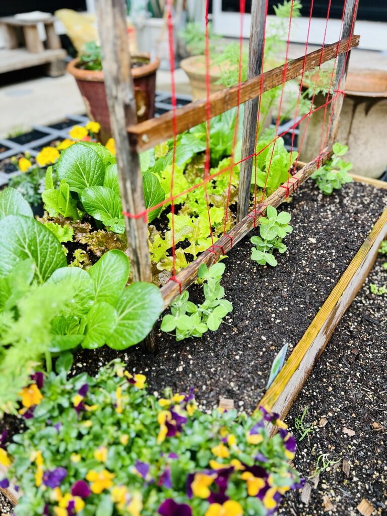 私は、とにかくコンパニオンプランツが好きで、できる限りギッシリ植えるのが好きだ。 去年の秋に、小松菜、レタス類、ディルとビオラ、パンジーを植え、野菜を摘みながら、冬越しをし、春を迎えようとしている。